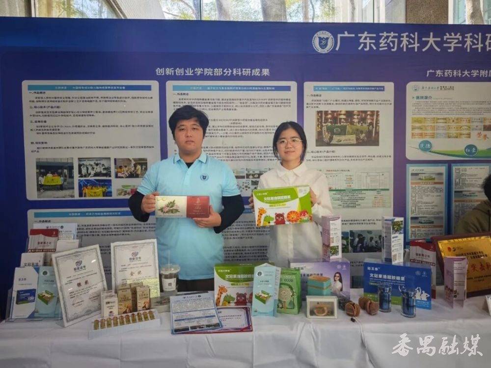 会议期间还举办了广东药科大学科研成果展,分设广东药科大学学院成果展区、“双百行动”成果展区、科技园成果展区以及附属医院展区,展示师生最新的科研成果及样品。