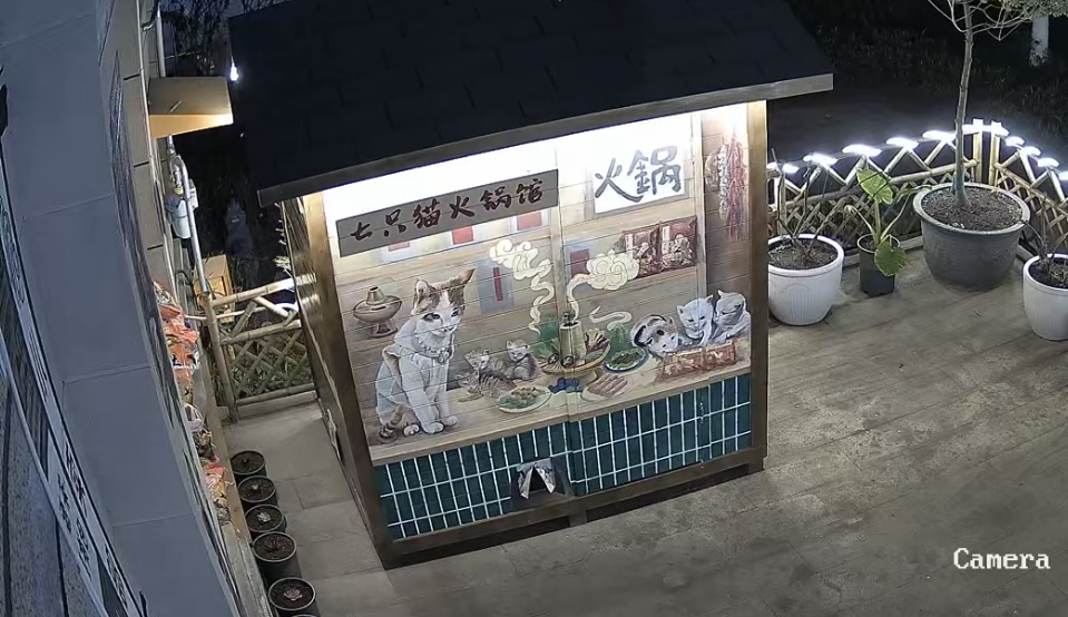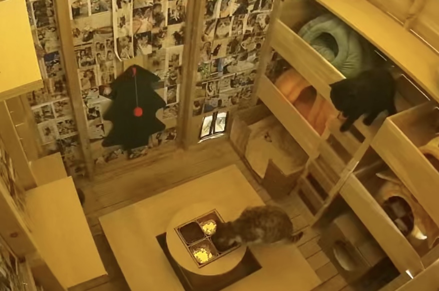 此后,为帮助周边更多流浪猫,李先生又建造了一个约4平方米的木屋,供它们食宿。木屋内部设计为三层,放有8个猫窝。底部设计成像火锅一样的圆桌,上面放着四宫格,营造出“猫咪火锅店”的氛围。